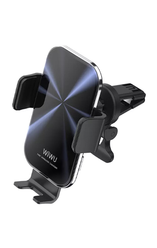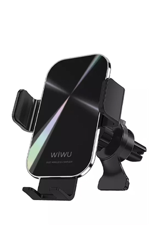 حامل موبايل وشاحن لاسلكي لأجهزه الموبايل في السيارات من شركة ويو ,بتصميم بلاستيكي قوي ومتين بقدرة شحن لاسلكية 15 واط ,قابل للتثبيت في فتحات تبريد السيارات