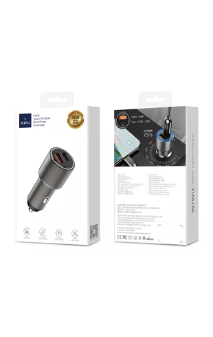 شاحنة موبايل للسيارة من شركة ويو , تصميم متين بمنفذي شحن يو اس بي واخر تايب سي وبخاصية الشحن السريع بقدرة شحن 36 واط