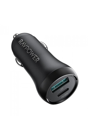 شاحن سيارة بمنفذي تايب سي واخر يو اس بي من شركة رافباور, بقدرة شحن 30 واط