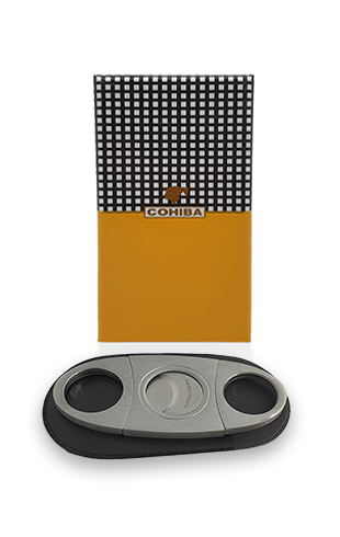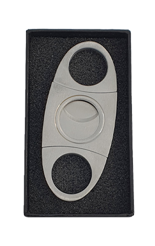 .قاطع سيجار ستنلس ستيل من كوهيبا مقاوم للصدأ ذو شفرات مزدوجة بتقنية الشحذ الذاتي مما يقطع السيجار بدقة ونضافه عالية يأتي بفتحة 22.66 لجميع الأحجام يأتي في حقبة جلدية صغيرة