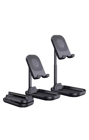 حامل موبايل منضدي من شركة ويو , تصميم مصنوع من الالمنيوم والبلاستك, مناسب للأجهزة المحمولة بحجم شاشة قصوى 12.9 انج هيكله بحجم قابل للتغيير وزاوية قابلة للتعديل