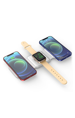 قاعدة شحن لاسلكي بقدرة 15 واط من شركة ويو , بأمكانية شحن سماعات واساعة آبل مع جهاز الموبايل في وقت واحد