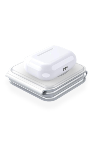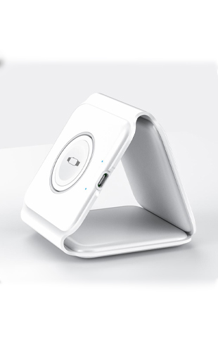 قاعدة شحن لاسلكي بقدرة 15 واط من شركة ويو , بأمكانية شحن سماعات واساعة آبل مع جهاز الموبايل في وقت واحد , مع إمكانية استخدامها كحامل للموبايل وتدعم الشحن السريع