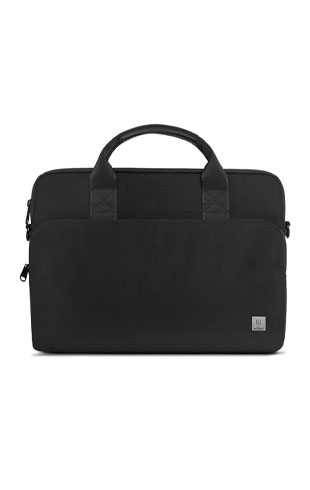 حقيبة لابتوب سوداء انيقة من شركة ويو, 14 انش بتصميم يحمي اللابتوب من الصدمات المحتملة مبطنة بالفرو الصناعي من الداخل ذات خامة مقاومة للماء والغبار بسحاب متين غير قابل للتلف
